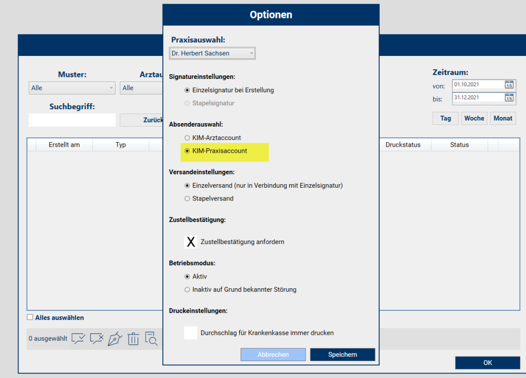 - Absenderauswahl so einstellen wie das KIM Postfach registriert wurde