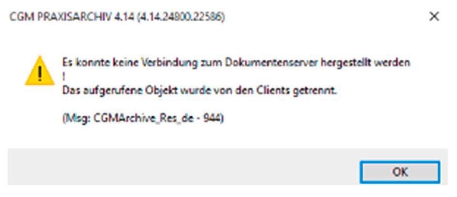 • PraxisArchiv: Es konnte keine Verbindung zum Dokumentenserver hergestellt werden!