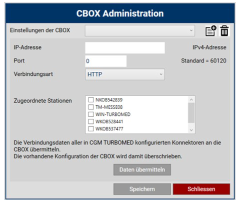 Eine im Netzwerk aktive CBOX muss einmalig in CGM TURBOMED erfasst und jeder Arbeitsstation mit einer